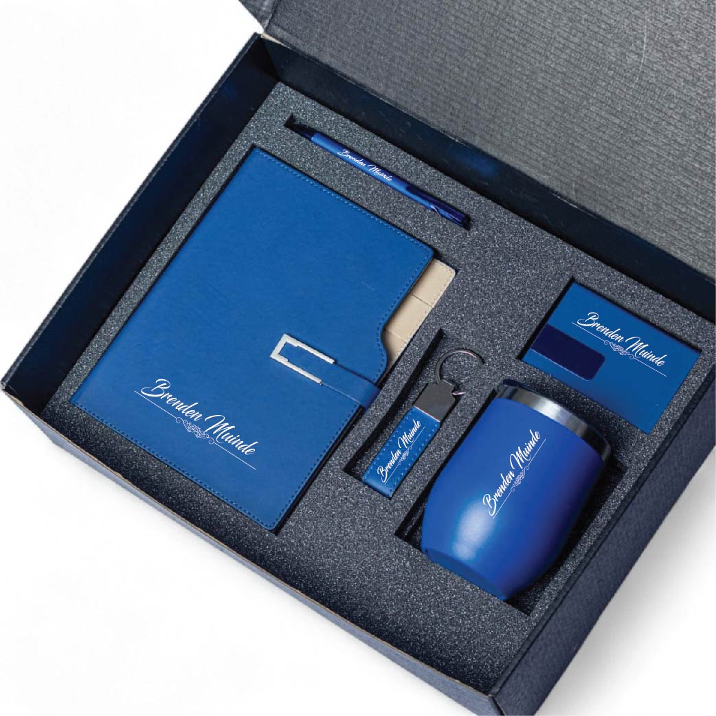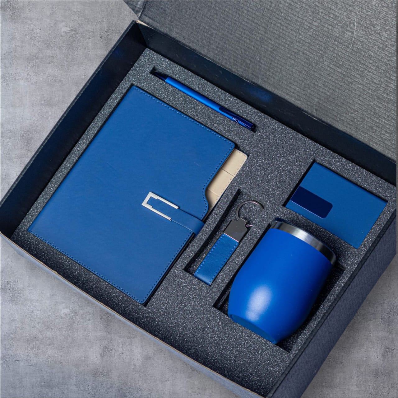 Elevate your professional style or honor a valued colleague with this Premium Executive 5-in-1 Gift Set. Presented in a sophisticated, deep-blue hue, this collection includes five essential accessories, each designed for the modern professional. The set offers a refined, cohesive look, making it the perfect corporate gift, welcome kit, or personalized desk upgrade.