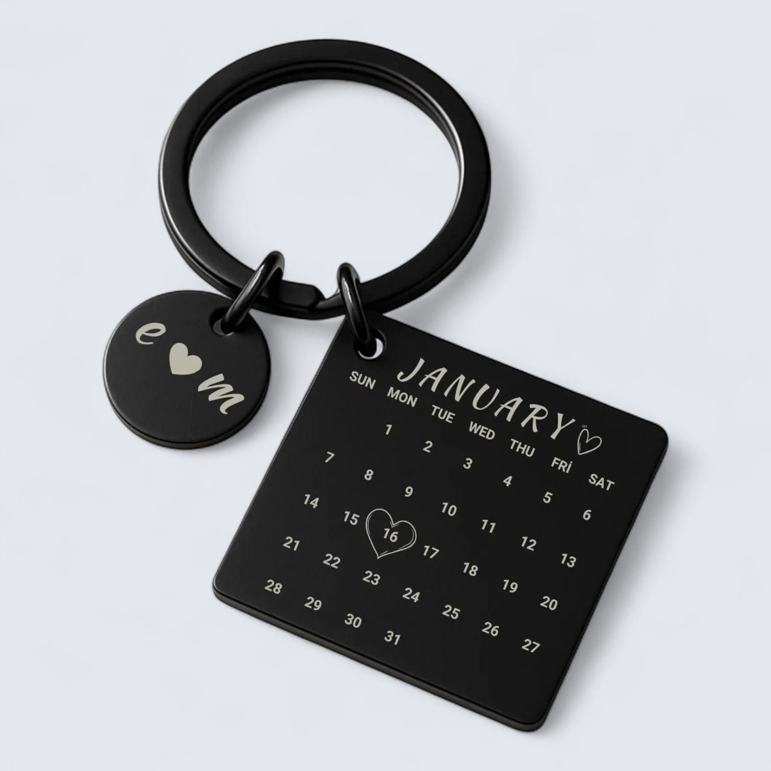 Our Personalized Calendar Keychain is the perfect keepsake to mark birthdays, anniversaries, engagements, weddings, or any unforgettable moment. Designed with a sleek black finish, this elegant keychain features a mini calendar highlighting your special date with a heart, plus a custom initial charm for a personal touch.