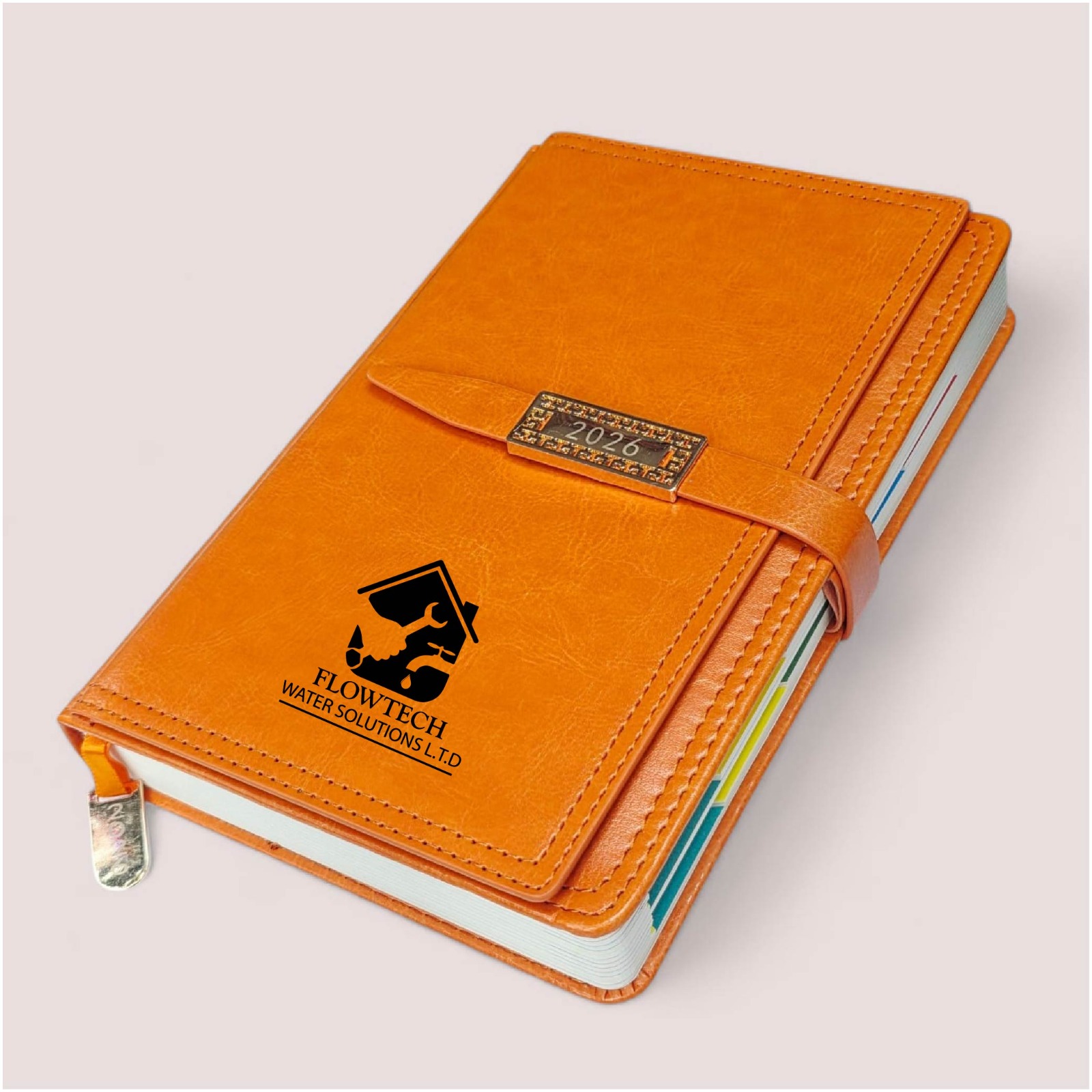 - Corporate Branding Ready: The smooth cover is ideal for custom printing or laser engraving of corporate logos, text, or slogans (as shown with the “FLOWTECH Water Solutions L.T.D” logo), perfect for promotional giveaways.