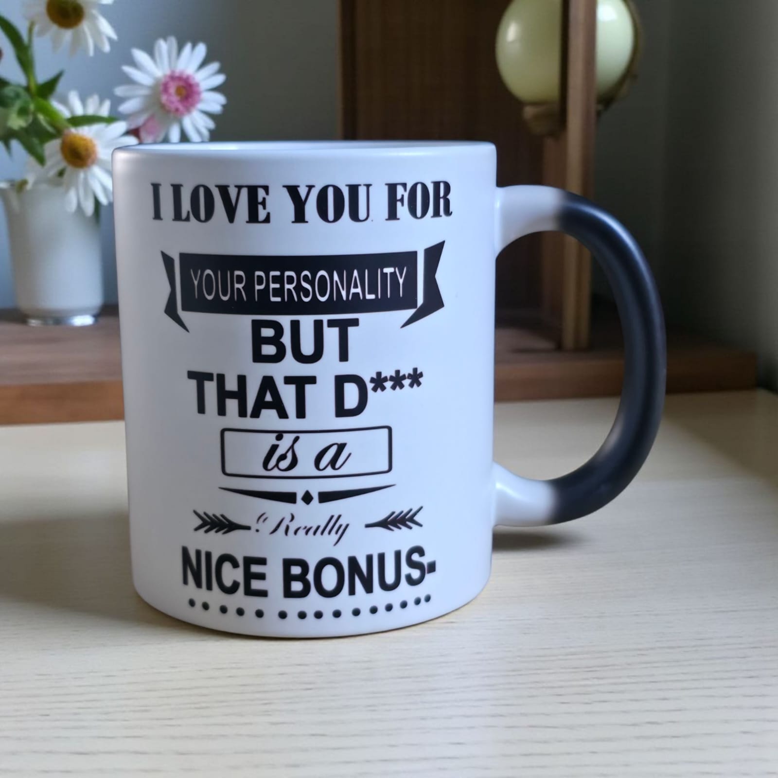 - Explicit & Humorous Message: Features the quote: “I LOVE YOU FOR YOUR PERSONALITY BUT THAT D*** IS A REALLY NICE BONUS.” This is a bold, funny, and slightly raunchy statement, perfect for those with a great sense of humor.