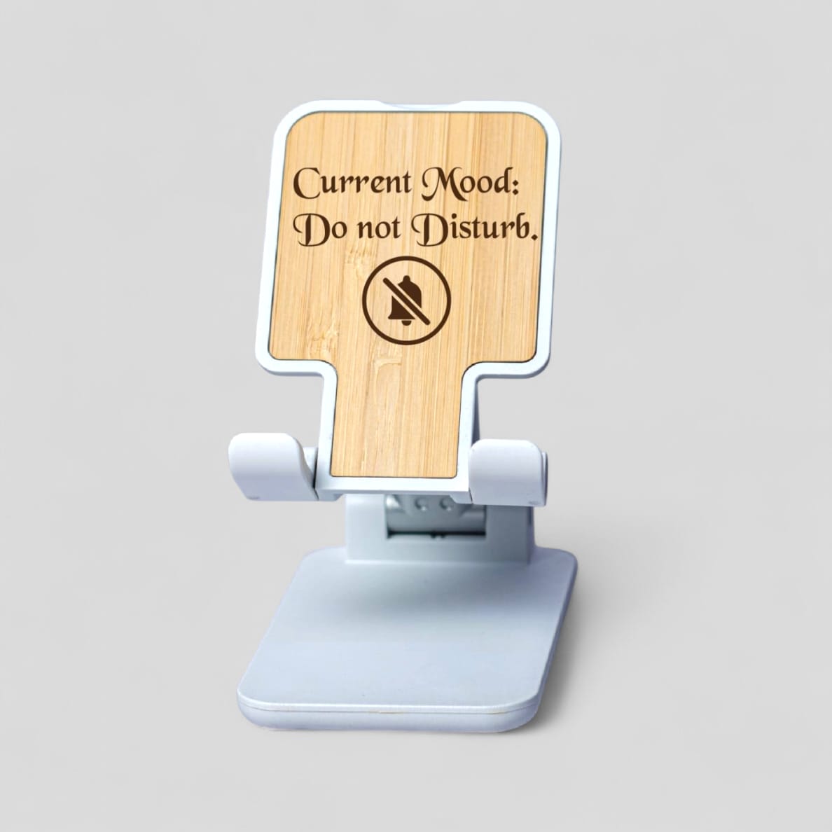The engraved wooden panel allows you to customize it with names, quotes, logos, or fun messages like “Current Mood: Do Not Disturb”, making it a perfect gift or branded desk accessory. Its adjustable design ensures the perfect viewing angle for watching videos, video calls, or browsing hands-free.