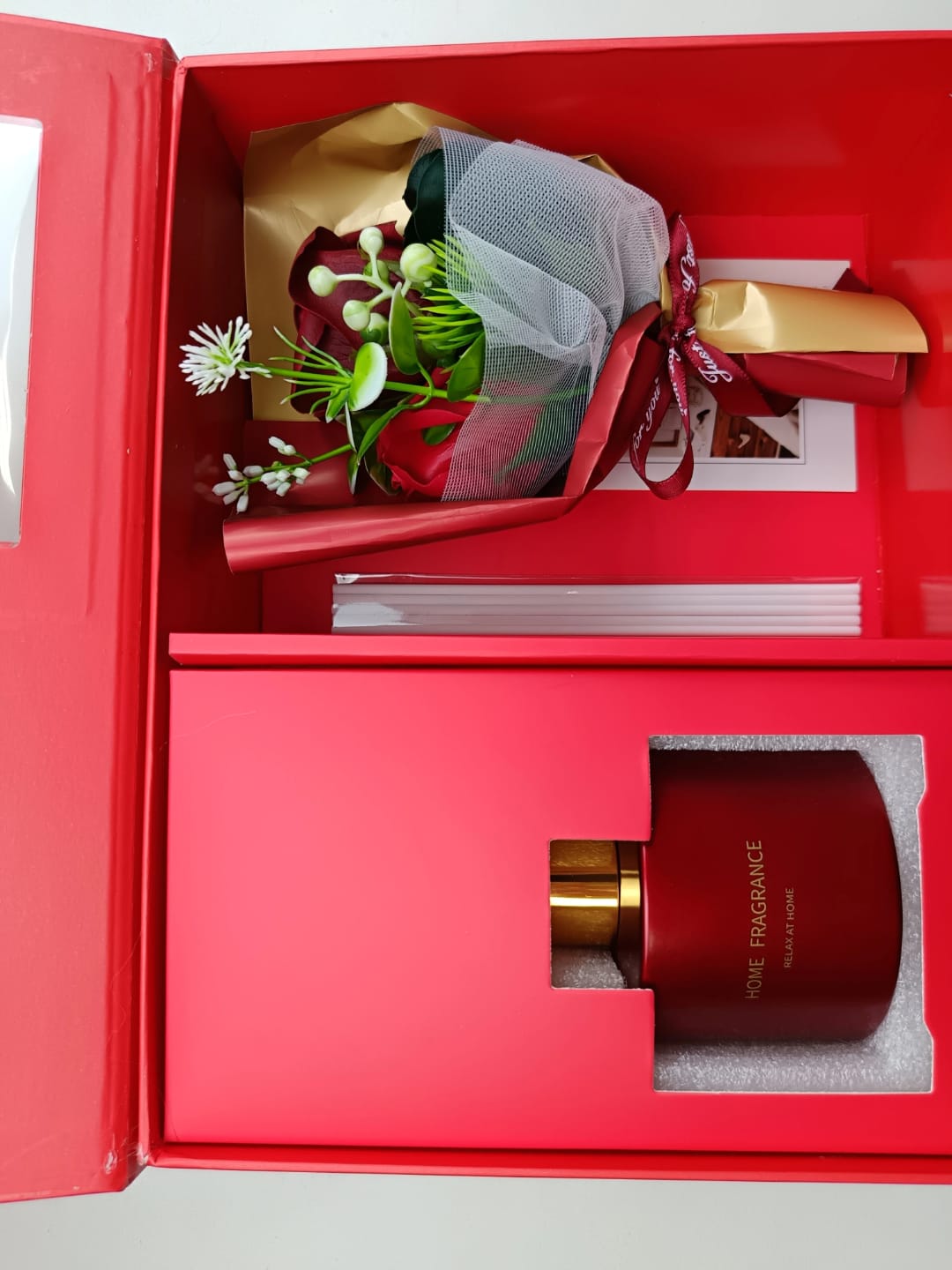 Elevate any space with this Romantic Home Fragrance For Her, a luxury diffuser gift set designed to fill rooms with warmth, romance, and timeless sophistication. Elegantly presented in a premium red gift box, this refined home fragrance diffuser transforms everyday spaces into calming, inviting sanctuaries.