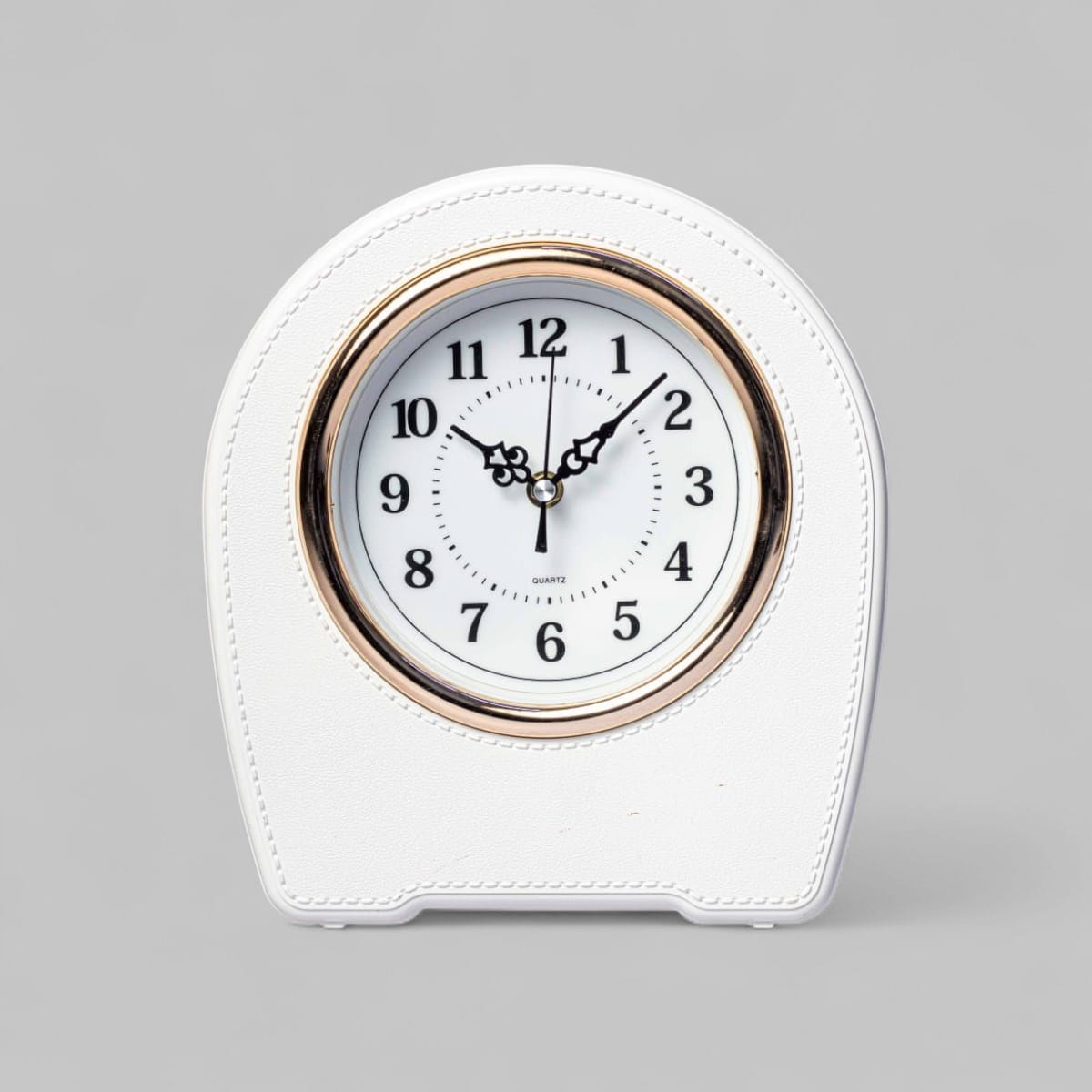 Featuring a classic quartz movement, this clock delivers accurate timekeeping while showcasing a stylish white body accented with a gold-trimmed round frame for a premium look.