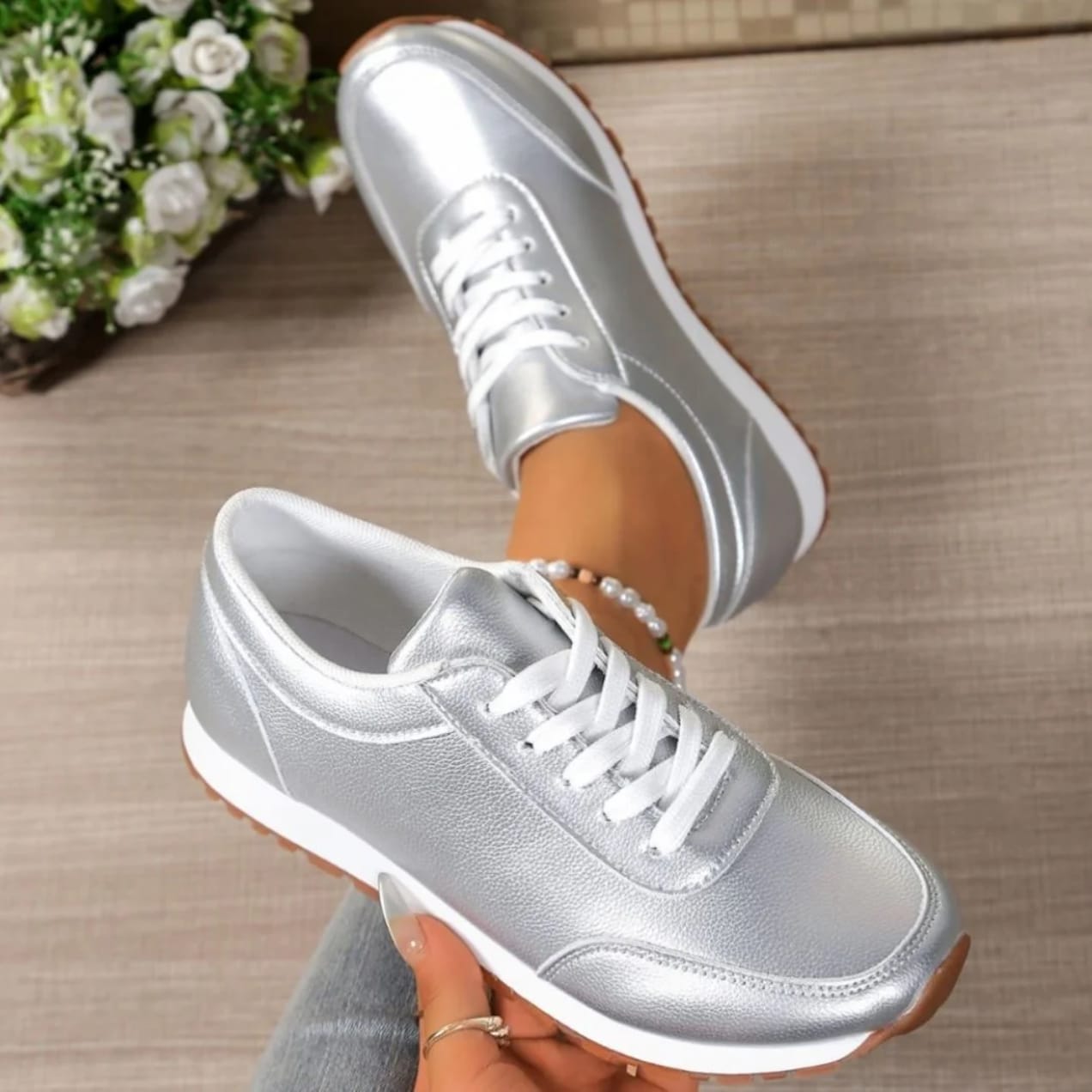 Step into effortless comfort and style with these Women’s Lightweight Anti-Slip Sneakers, designed for everyday wear. Featuring a sleek metallic silver finish, these shoes add a modern, trendy touch to any outfit while keeping your feet comfortable all day long.